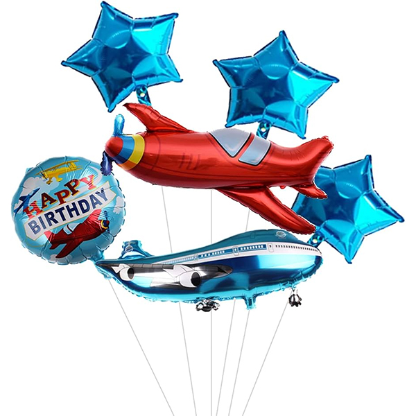 Маленький набор фольгированных шаров "Самолет":Этот небольшой набор фольгированных шаров в виде самолета состоит из 6 фольгированных шаров, фольгированных шаров в виде самолетов, фольгированных шаров со звездами, фольгированных шаров с облаками, фольгированных шаров с цифрами и т. д. Эти воздушные шары изготовлены из высококачественной алюминиевой фольги, которая устойчива к проколам и сохраняет форму, обеспечивая длительный декоративный эффект для вашей вечеринки. Вы можете выбрать наш подходящий набор или настроить его в соответствии с вашими требованиями. Этот пакет предназначен для быстрого надувания воздухом или гелием. В комплект входят клеевые точки и ленты, что делает процесс установки простым и легким. Воздушные шары в форме самолетов создают радостную и яркую атмосферу. Подходит для различных вечеринок и детских дней рождения.