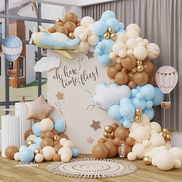 Гирлянда из воздушных шаров с фольгированным шаром-самолетом:Эти гирлянды из воздушных шаров с фольгированным воздушным шаром самолета состоят излатексные шары, фольгированные шары, пятна клея для воздушных шаров, лески и другие аксессуары для воздушных шаров. С помощью этих аксессуаров вы легко сможете создать арку из воздушных шаров. Наши латексные и фольгированные шары изготовлены из натурального каучука и высококачественных материалов из алюминиевой фольги, которые безопасны и нетоксичны и могут создать красивую арку из гирлянд из воздушных шаров. Эта гирлянда из воздушных шаров в виде самолета подходит для различных тематических сцен, включая вечеринки по случаю дня рождения, тематические вечеринки в стиле самолета, тематические вечеринки, посвященные полету времени, и вечеринки по случаю крещения детей. Он идеально подходит для придания красок любому празднику.