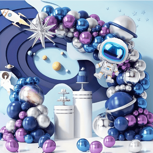 Набор фольгированных шаров космонавта небольшой и изысканный, удобный и простой в сборке. В центре вечеринки находится космонавт, а его окружает воздушный шар с планетой. Звезды вытягивают цветы с обеих сторон без сложных инструментов. Маленький костюм подойдет для повседневного украшения небольших семейных дней рождения и детских комнат. Это яркая точка отсчета космического ветра.