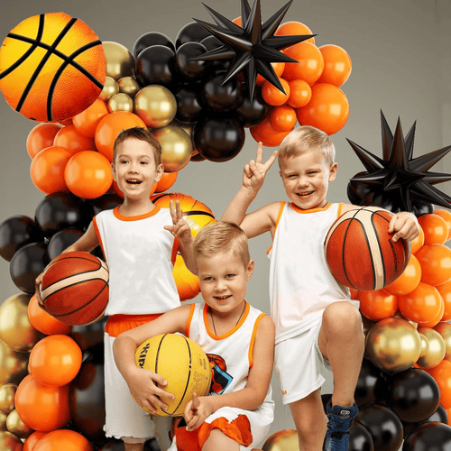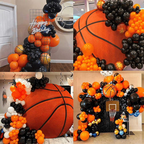 Комплект гирлянды из баскетбольных шаров - символ спортивного духа. В комплект входит несколько латексных шаров и несколько фольгированных шаров. Что касается баскетбольной темы, цвета этого набора в основном оранжевый и черный, а для создания разных слоевметаллические золотые латексные шарытакже добавляются. Общий стиль очень привлекателен и может мгновенно улучшить атмосферу вашей вечеринки.