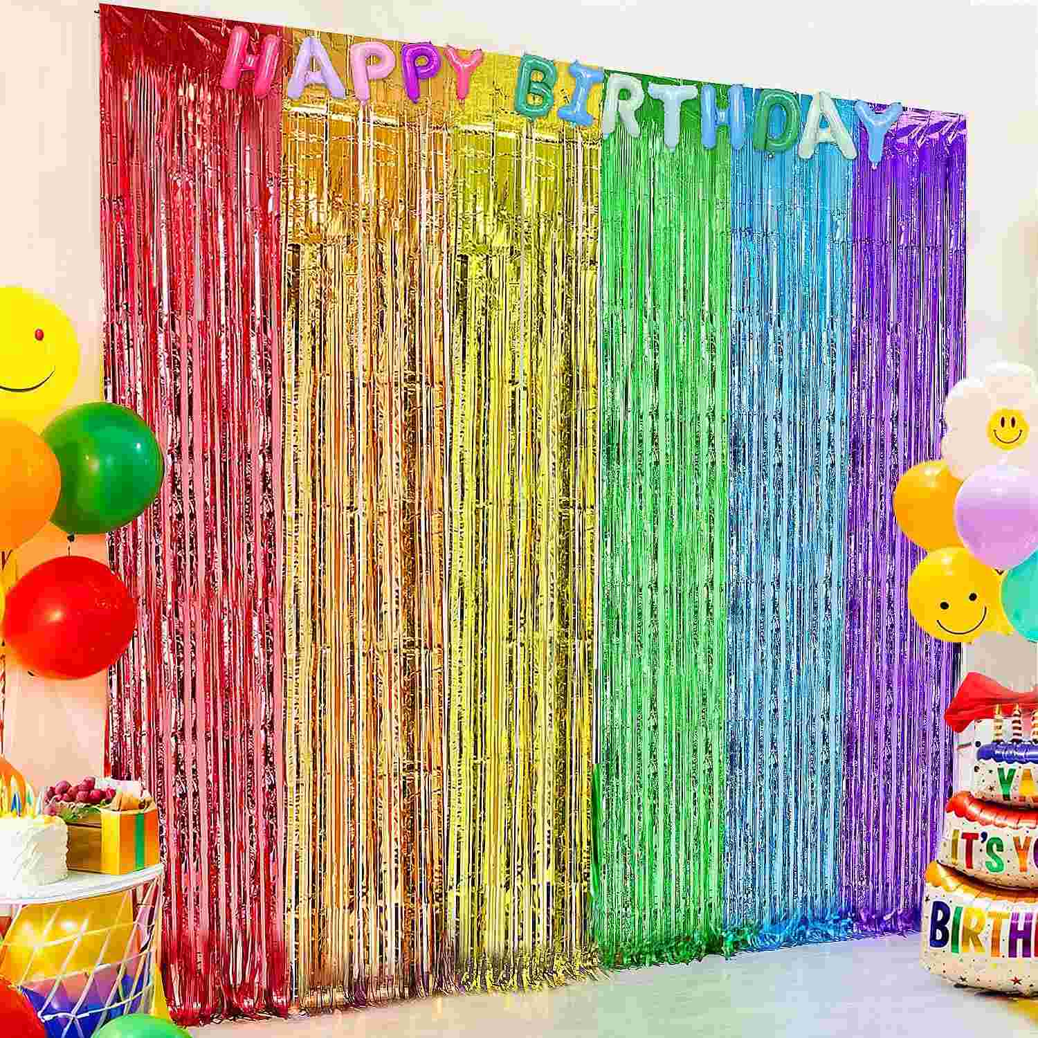 Модные украшения для фона из фольги для вечеринки по случаю дня рождения изготовлены путем плетения металлических проволок высокой плотности. Они очень хорошо висят за счет прочной драпировки. Слегка встряхните их, и они потекут водопадом. Это выглядит так красиво. У него есть много разных цветов на выбор. Вы можете выбрать золото цвета шампанского, розовое золото, серебро и многое другое. Если хотите, вы также можете использовать стили цветных блоков. Он соответствует потребностям в подборе цветов для различных сцен.