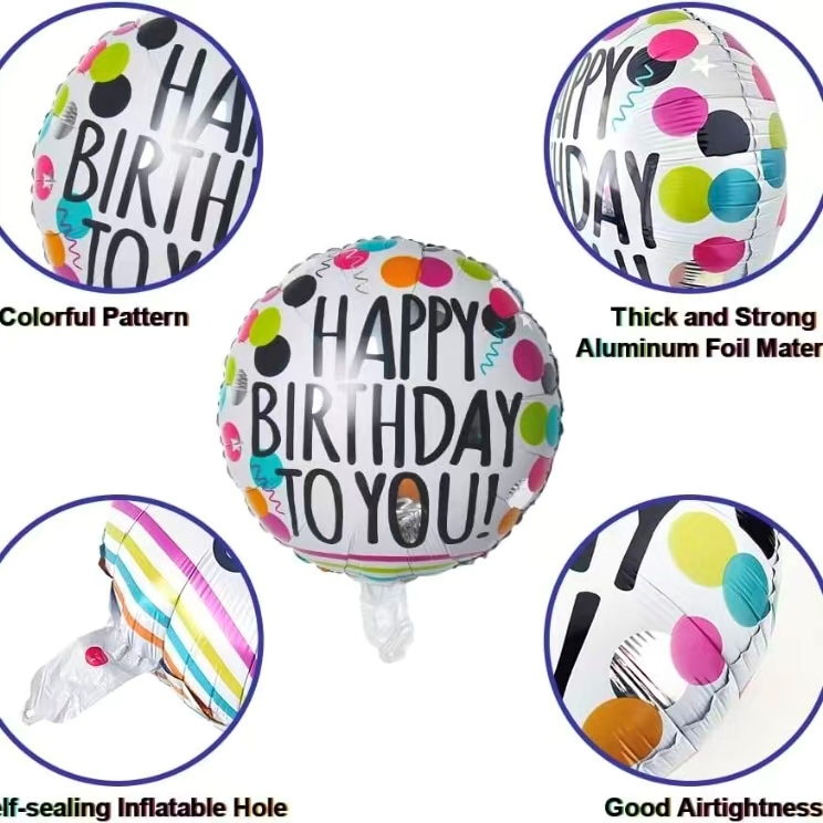 Они сделаны из фольги хорошего качества. Они имеют прочную герметизацию. Они легкие и качественные. На поверхности использована приятная технология печати. Узоры четкие и яркие. Цвета яркие и не выгорают легко. Вы можете получить классический текстовый дизайн. К ним относятся слова «С Днем Рождения» на китайском и английском языках. Также есть множество стилей с героями мультфильмов и возрастными цифрами. Они подходят для мероприятий по случаю дня рождения для разных возрастных групп. Это охватывает детей и взрослых.