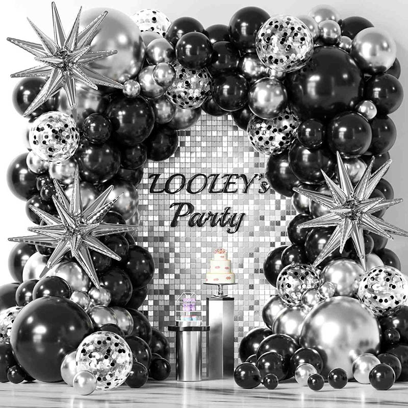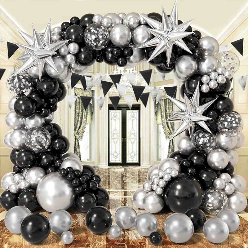 В общем, черный и серебристый вместе означают объединение разума и мечты. Они спокойны, но имеют приятные моменты. Они не бросаются в глаза, но создают ощущение роскоши. Комплект черно-серебряных гирлянд из воздушных шаров — это не просто украшение. Они также демонстрируют определенный стиль. Они могут излучать элегантность, современность и силу в любом месте. Они придают мероприятию приятную торжественную атмосферу. Они подойдут для романтических свадеб, модных вечеринок или корпоративных мероприятий. Наборы гирлянд из черных и серебряных воздушных шаров на день рождения могут стать основным акцентом благодаря своему особому очарованию. Они дарят каждому гостю незабываемые впечатления от праздника.