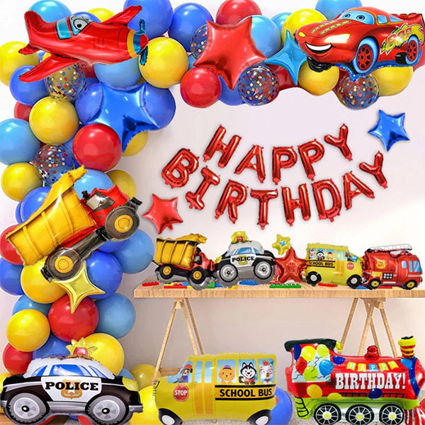 Если вы хотите использовать на небольших вечеринках или в качестве украшения. Вы можете выбрать небольшие наборы фольгированных шаров с мультяшными автомобилями, которые мы подберем для вас. В этот комплект обычно входит большой фольгированный шар с мультяшным транспортным средством, круглый фольгированный шар диаметром 18 дюймов и фольгированный шар со звездой диаметром 18 дюймов. Эти воздушные шары выглядят очень красиво и могут подчеркнуть красоту фотографий. Украшение им главной стены позволяет гостям сделать идеальные фотографии для социальных сетей, ведь, как мы знаем, без фотографии с идеальным фоном вечеринка не будет полной.