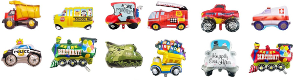 Бесплатный образец фольгированных шаров с изображением транспортных средств.