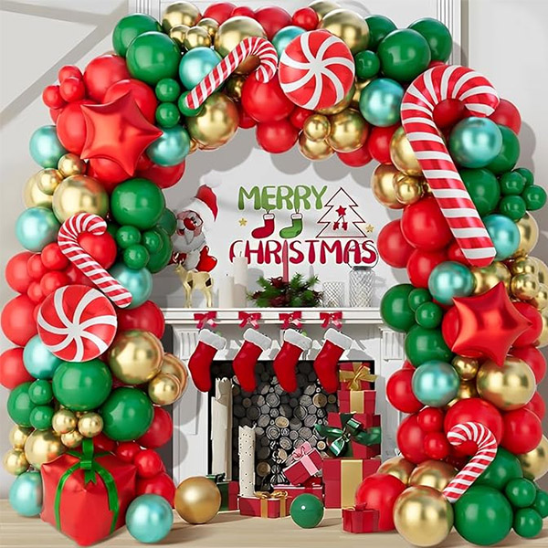 Если вы хотите использовать воздушные шары в качестве привлекательного украшения на рождественской вечеринке, попробуйте наши наборы гирлянд из воздушных шаров с рождественскими фольгированными шарами. ЭтотНаборы рождественских гирлянд из воздушных шаровмы сделали, содержитлатексные шары,которые изготовлены из высококачественного латексного материала, и фольгированные шары, изготовленные из высококачественного материала из алюминиевой фольги.Наборы гирлянд из воздушных шаровс рождественским фольгированным шаром подходят для многих случаев. Эти воздушные шары в основном красные и зеленые, дополненные золотыми шарами. Они подходят для рождественских вечеринок, новогодних украшений, дней рождения, детских дней рождения, юбилеев, корпоративных мероприятий, детских праздников и других случаев. Будь то вечеринка в помещении или на открытом воздухе, вы можете сделать свою вечеринку более привлекательной.