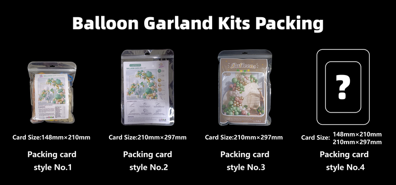 Упаковка комплектов воздушных арок зависит от случая продажи. Если вы продаете его через Интернет, указанный ниже стиль упаковки № 1 и вакуум подойдет вам, это поможет вам сэкономить место и стоимость доставки. Но если вы продаете в магазине индивидуальные комплекты красочных арок из воздушных шаров, вам подойдет большая упаковочная сумка в стиле упаковки № 2 или более большего размера, а большая упаковочная сумка с карточками с наборами красочных арок из воздушных шаров разных стилей может лучше показать продукты вашим клиентам. Но если вы хотите изготовить свой собственный стиль упаковки, это тоже нормально, вы можете сообщить нам свои требования, наш дизайнер сделает это за вас. Или вы создадите дизайн и отправите нам окончательный дизайн, наши работники сделают высококачественные красочные украшения из комплектов арок из воздушных шаров в соответствии с вашими требованиями.