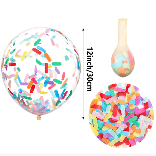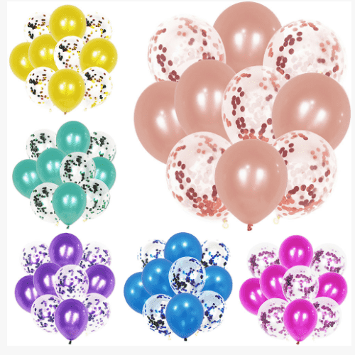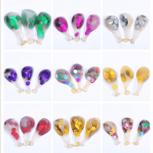В воздушных шарах с конфетти обычно используются 12-дюймовые прозрачные латексные шары. Каждый воздушный шар содержит 1 г конфетти, а каждая упаковка может вмещать 100 шт. Воздушные шары с конфетти такого размера используются часто и дают лучшие результаты, будь то небольшие костюмы из воздушных шаров или наборы венков из воздушных шаров.
