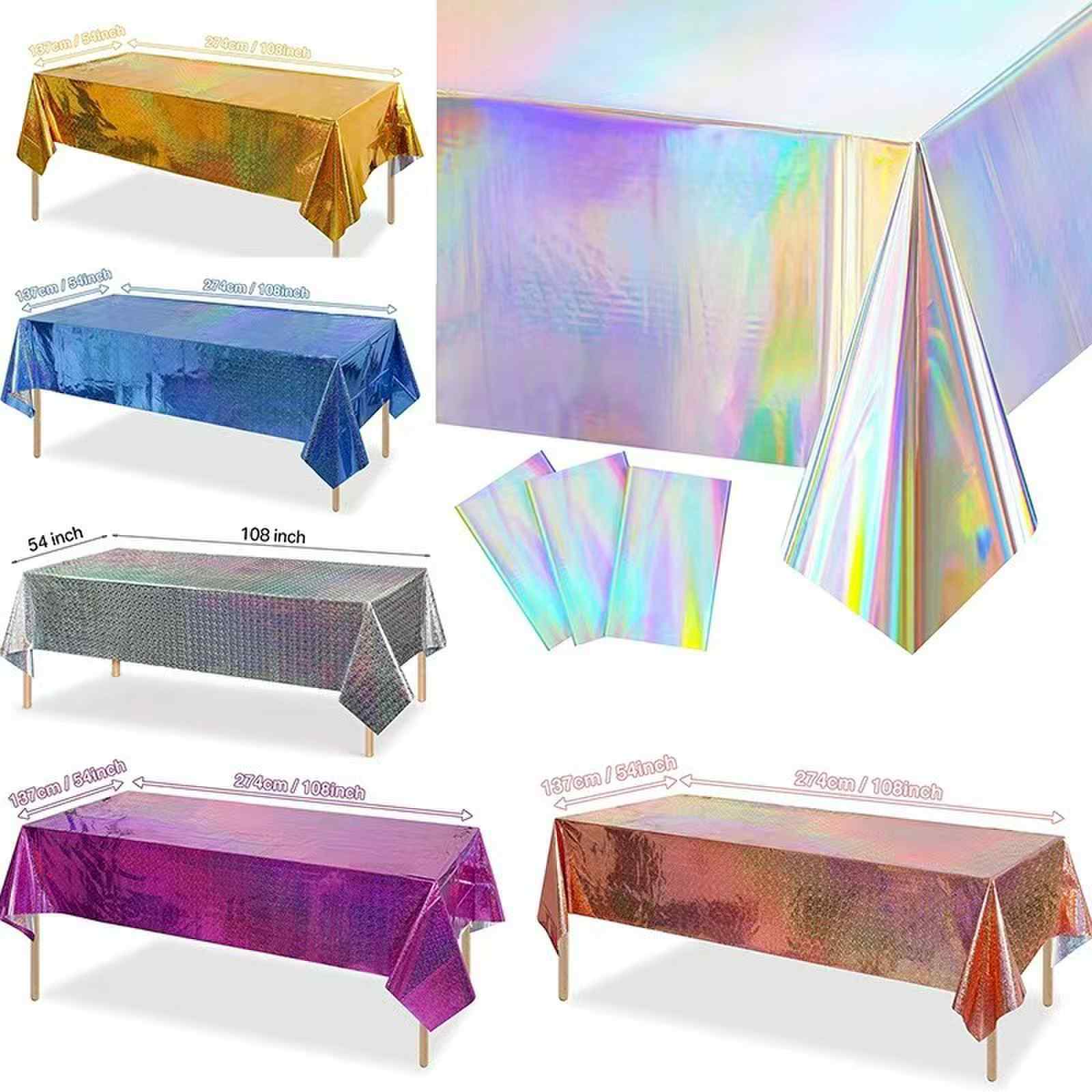 скатерть из фольги цвета радуги с мультяшными животными и узорами тортов, подходящая для детских дней рождения; золото, серебро, лазерный цвет со звездами и буквенными узорами, подходит для вечеринок по случаю дня рождения для взрослых, юбилейных торжеств, вечеринок с подругами и т. д., может быть организовано на семейных обеденных столах, столах для вечеринок в отеле, столах для пикника на открытом воздухе и других сценах.