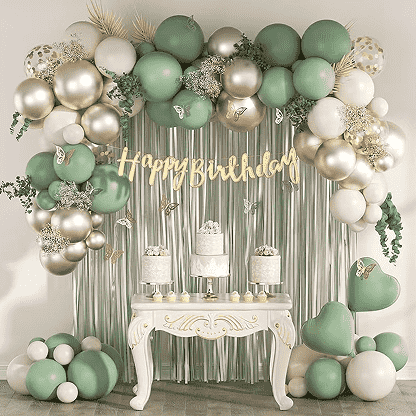Этот набор украшений воздушными шарами с днем рождения сочетает в себе латексные шары, фольгированные шары с фоном и скатертью, чтобы создать захватывающую сцену вечеринки по случаю дня рождения за счет унификации цвета. Фон и скатерть можно настроить в соответствии с размером сцены, а стиль и рисунок можно настроить в соответствии с темой вечеринки и цветовой системой.