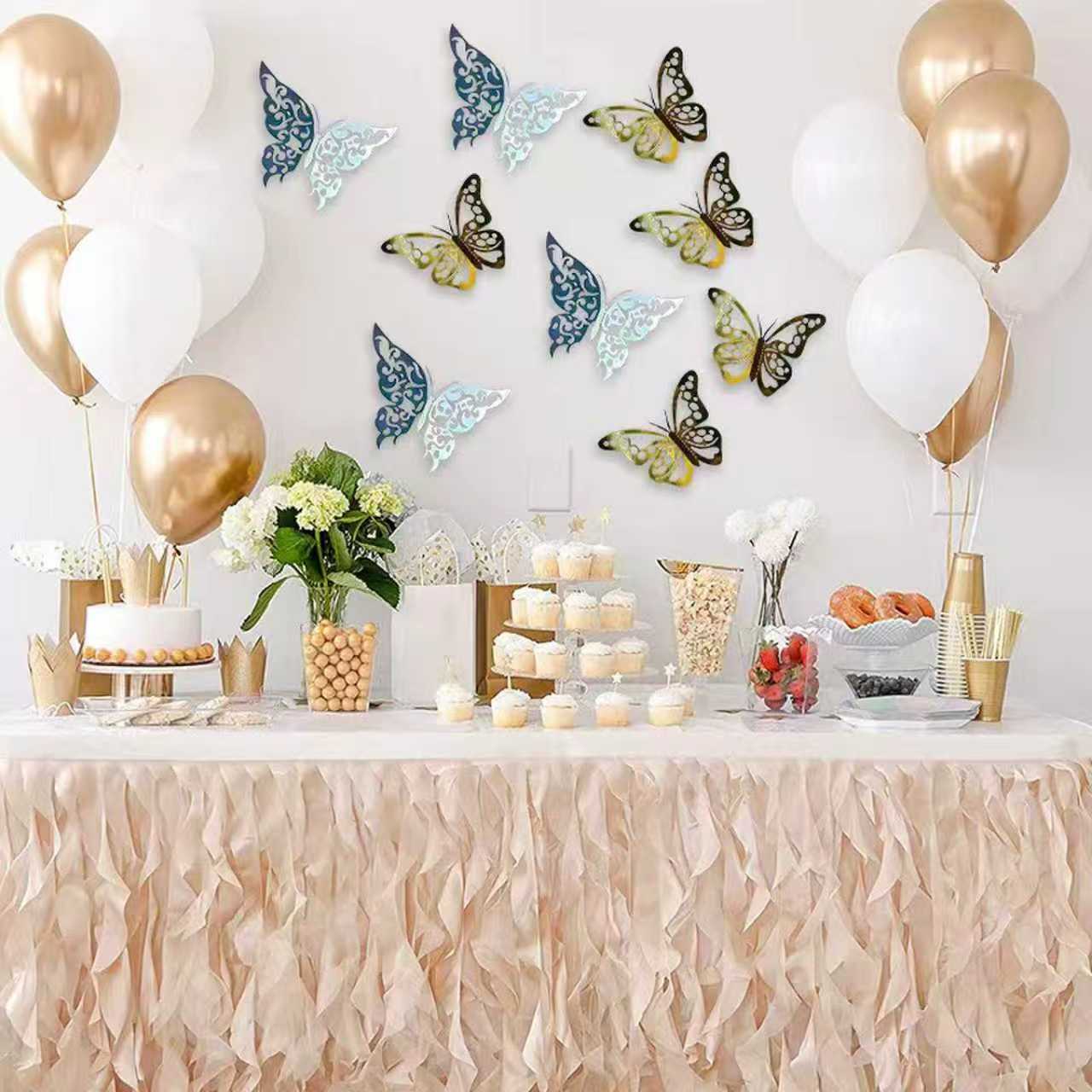 В тот момент, когда спрос на легкие украшения и индивидуальную эстетику возрос, наклейка с полой бабочкой стала предпочтительным предметом для планировки дома, планирования вечеринок и украшения коммерческих помещений благодаря своим трем основным преимуществам: экологически чистый материал, многослойный трехмерный дизайн и адаптация к нескольким сценам. В основе продукта лежит пищевой ПЭТ, а с помощью процесса лазерной высечки он создает однослойные, двухслойные и трехслойные дифференцированные стили, сохраняя нежную текстуру крыльев бабочки и реализуя уникальный эффект взаимодействия света и тени с помощью полой структуры. Независимо от того, наклеен ли он на стену для создания динамичной тени бабочки или в сочетании с воздушными шарами для создания ощущения парящей гибкости, его можно быстро установить без профессиональных инструментов, легко привнося естественную и романтическую атмосферу в семейное пространство, вечеринки по случаю дня рождения, свадебные сцены и коммерческие магазины, а также удовлетворяя разнообразные потребности в декорировании как обычных потребителей, так и специалистов по планированию сцен.