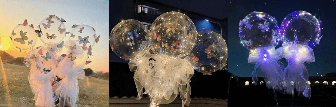 Сам воздушный шар Бобо прозрачный и простой, что полностью соответствует светопропускающей гибкости полой наклейки-бабочки. Основное использование наклейки - превратить монотонный воздушный шар в подвесной шар для танца бабочки и сделать воздушный шар центром сцены благодаря трехмерной форме бабочки и эффекту света и тени. Детский день рождения, вечеринка по случаю дня рождения для взрослых, свадебная зона, мероприятия в торговых центрах, украшение дома на праздники очень подходят. Ночью его также можно сочетать со светодиодной подсветкой, что очень привлекает внимание.