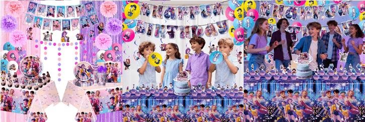 1. Вопрос: Какие продукты в основном включают в себя набор украшений для вечеринки «K-POP Demon Hunters Party»?