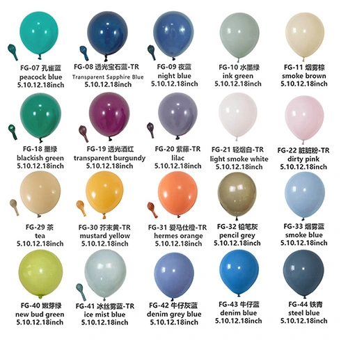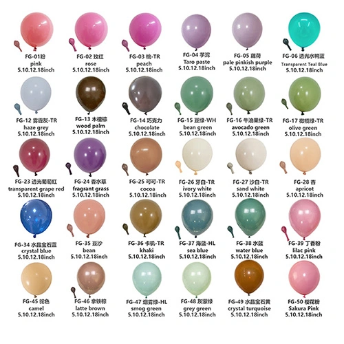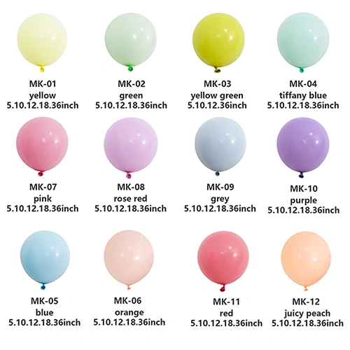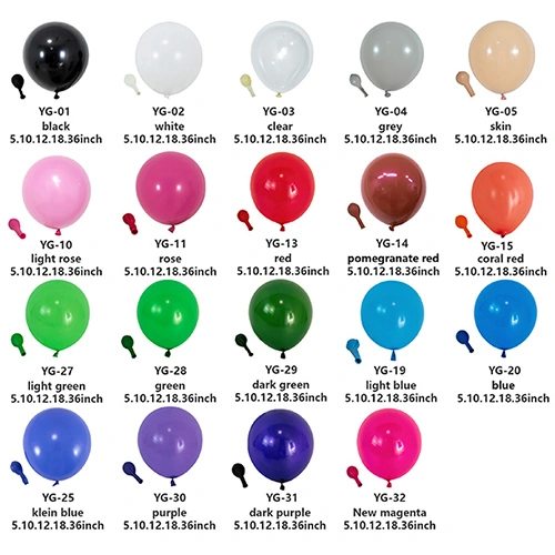 Латексные шары являются широко используемым декоративным и развлекательным предметом. Эти воздушные шары очень популярны в различных случаях благодаря разным цветам и способам использования. От матового красного, желтого, синего и зеленого до ретро-розового и фиолетового, а затем до металлических тонов, таких как золото и розовый, высококачественные воздушные шары могут создавать удивительные визуальные эффекты и соответствовать потребностям различных сценариев.