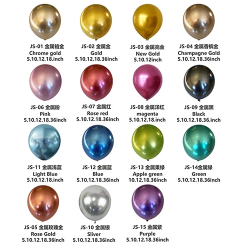 Металлические шары:Благодаря глянцевой зеркальной поверхности, привлекательным текстурам и цветам это самые универсальные латексные воздушные шары для использования в украшениях вечеринок, индивидуальной печати и т. д.