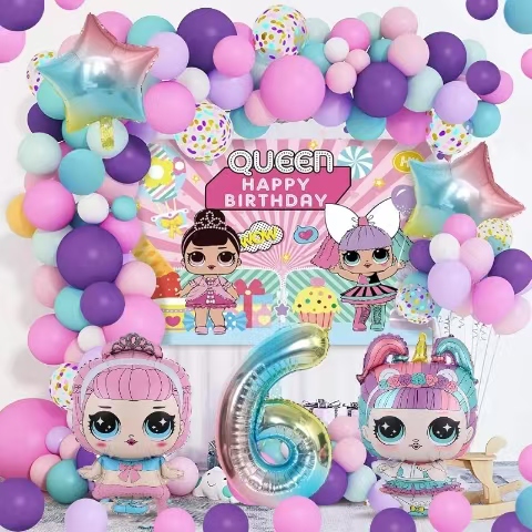 Набор тематических воздушных шаров LOL содержит латексные воздушные шары, фольгированные шары и другие аксессуары, большое количество воздушных шаров, подходящих для детских дней рождения, юбилеев, церемоний крещения, прогулок на выходных, рождественских вечеринок и других случаев украшения.