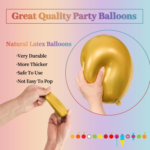 Размер: Размер металлических латексных шаров составляет 5 дюймов, 10 дюймов, 12 дюймов, 18 дюймов и 36 дюймов.