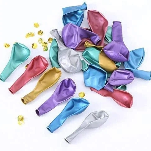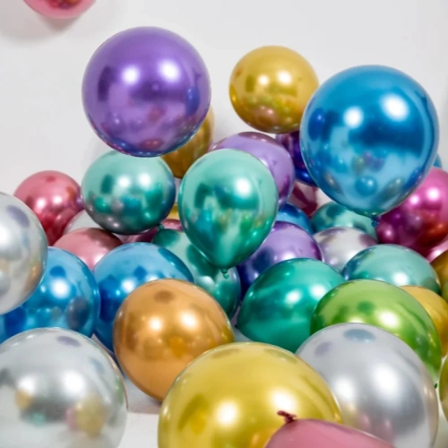 Металлические латексные шары широко используются из-за их отделки. По сравнению со стандартными воздушными шарами поверхность имеет более отражающий вид, что делает их более подходящими для украшения и демонстрации в розничной торговле.
