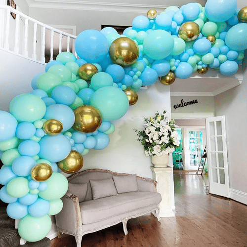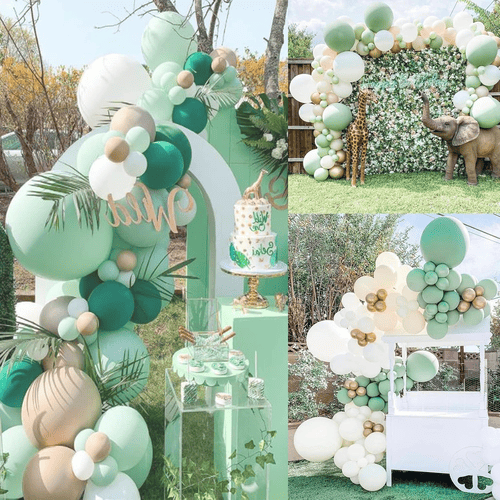 Гирлянда из мятных шаров состоит извысококачественный латексный шари подходящие аксессуары. Стиль свежий и модный. С приходом весны и лета этот пакет становится все более популярным. Люди любят покупать этот комплект и использовать его на вечеринке по случаю дня рождения, свадьбе, вечеринке по случаю рождения ребенка и других вечеринках.