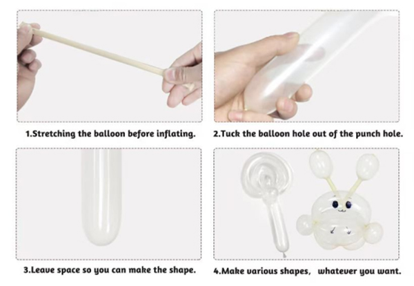 Эти пузырьковые участки могут быть зафиксированы путем завязки или кручения друг с другом. Они могут быть объединены в сложные формы. Примерами являются щенки, цветы и мечи. Структура каждой формы может оставаться стабильной. Это опирается на выносливость латекса и поддержку газа. Это не развалится легко.