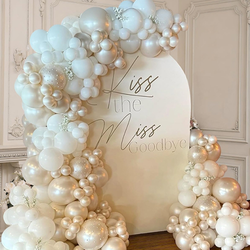 В комплект арки для свадебного душа с жемчугом входят латексные шары и сопутствующие аксессуары. Существует два типа перламутровых белых двухслойных воздушных шаров, а также жемчужные вставки, которые сделают украшение вашего воздушного шара более изысканным. Добавлятьжемчужные шарысоздать красивый фон для свадебной вечеринки, который произведет впечатление на гостей. Нашлатексные шарыизготовлены из 100% натурального каучука. Текстура воздушного шара толстая, ее нелегко сломать, чистый цвет. Высококачественный латекс позволяет шарику хорошо растягиваться при надувании. Добавление гелия может заставить воздушный шар плавать, не нужно беспокоиться о протечке воздушного шара, а срок их службы довольно длительный.
