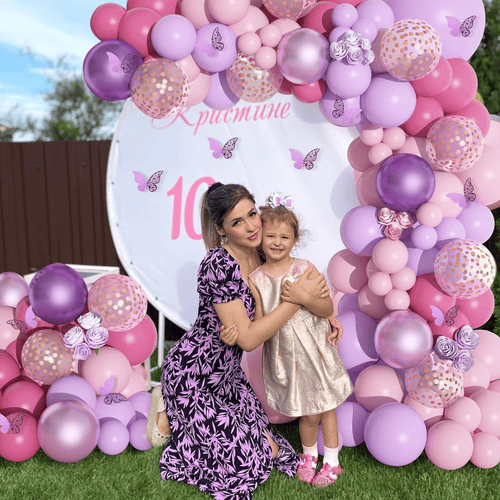 Набор гирлянд из розово-фиолетовых воздушных шаров — один из самых продаваемых наборов воздушных шаров на NiuN®. Благодаря привлекательным цветам и блестящей поверхности он нравится многим людям, особенно девочкам. В комплект входят различные латексные шары. Цвет их розовый и фиолетовый. В дополнение к обычному латексному шарику мы также добавили шарики с конфетти, чтобы увеличить количество слоев.
