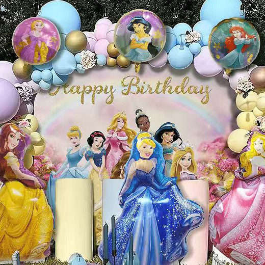 В комплект воздушных шаров входят латексные и фольгированные шары с изображением принцессы. Он не только сочетает в себе простоту компоновки набора латексных шаров, но также сочетает в себе трехмерный декоративный эффект набора фольгированных шаров. В то же время с помощью таких украшений, как фон и скатерть, как на вечеринках по случаю дня рождения в помещении, так и на открытом воздухе во дворе можно достичь многоуровневых декоративных эффектов от простоты до изысканности за счет гибкого сочетания, что особенно подходит для пользователей, которые стремятся к индивидуальному макету и хотят сэкономить время.