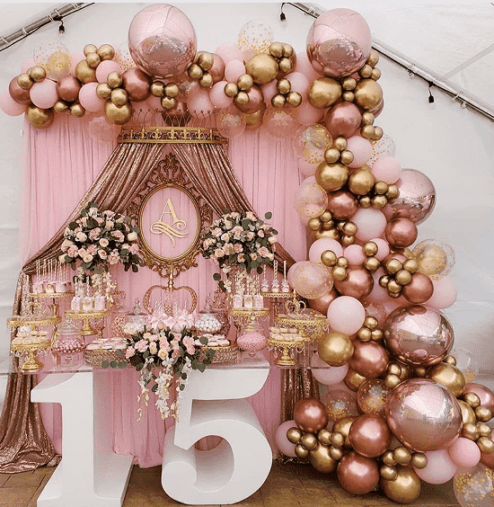 Комплект гирлянд из воздушных шаров из розового золота — один из самых популярных и очень дорогих роскошных предметов в нашей серии украшений из воздушных шаров. Он подходит для различных декоративных случаев и создает полную атмосферу.