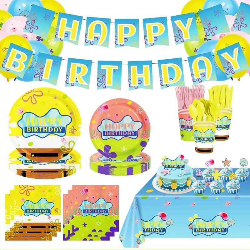 Набор посуды «Губка Боб» для детского праздника — интересный и полезный выбор. В качестве основного дизайна использованы известные персонажи, такие как Губка Боб и Патрик. В комплект входят тарелки, бумажные стаканчики, салфетки и посуда. На пластинках изображены Губка Боб с широкой улыбкой и Патрик со смешным лицом. В дизайн добавлены медузы, морские водоросли и ракушки, придающие морской стиль. Цвета яркие и насыщенные слоями. Бумажные стаканчики и салфетки выполнены в той же теме. Весь стол выглядит полным океанского веселья. В посуде использованы безопасные и экологические материалы. Он сохраняет милый стиль и к тому же полезен. Он подходит для вечеринок по случаю дня рождения, тематических мероприятий или семейных обедов. Набор устроит детям веселый праздник «Бикини Боттом», а родителям — простой и качественный вариант вечеринки.