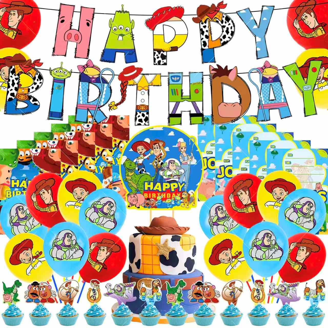 Комплект устраняет совпадающие проблемы. Он имеет много видов воздушных шаров и аксессуаров в одной пакете для легкой настройки. Воздушные шары высокого качества. Они сохраняют настроение вечеринки долго. Тема ясна. Вуди показывает ковбойский стиль, Buzz Lightyear показывает космический стиль. Оба приносят воспоминания о игрушках и добавляют больше чувств на вечеринку.