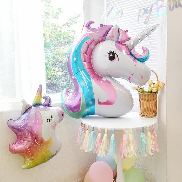 Эта гирлянда из воздушных шаров в виде единорога в основном состоит из латексных и фольгированных шаров. Латексные шары изготовлены из утолщенного нетоксичного натурального латекса, который чрезвычайно эластичен, долговечен и его нелегко сломать, поэтому он остается полным после сборки гирлянды из воздушных шаров. Воздушный шар из фольги единорога изготовлен из высококачественного материала из алюминиевой фольги, печать яркая и не выцветает, он может сохранять трехмерную форму и блестящий блеск в течение длительного времени.